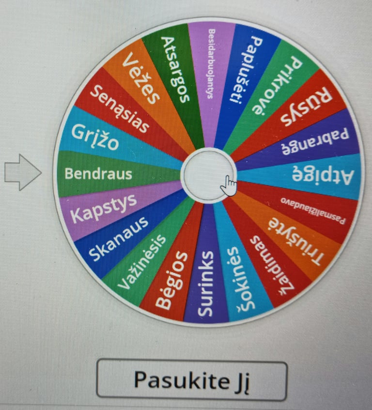 Inovacija taikyta 4 savaites. Užsiėmimo metu mokiniai suko žodžių ratą ir stengėsi kuo greičiau ir taisyklingiau perskaityti išsuktus žodžius. Vienas vaikas žodžius skaitė 2 minutes. Žaidimą Alias mokiniai žaidė poromis, vienas poros dalyvis aiškino ištrauktą žodį, o antrasis bandė atspėti kas vaizduojama kortelėje. Po 2 minučių mokiniai keitėsi rolėmis.